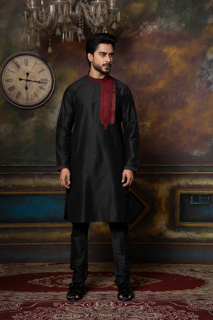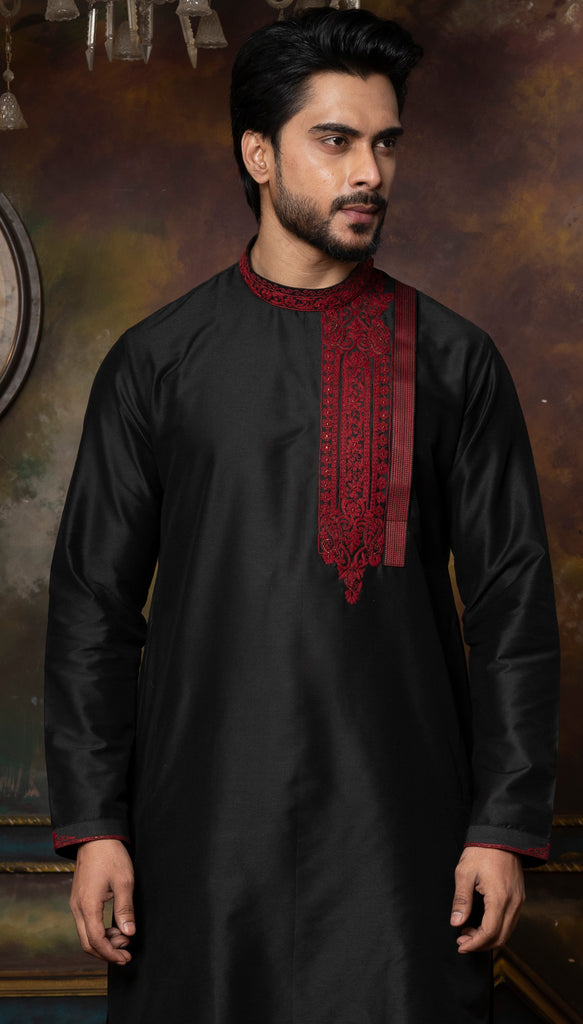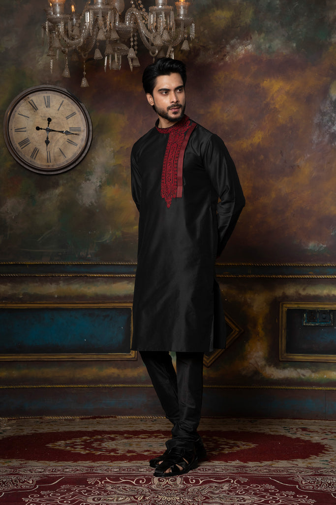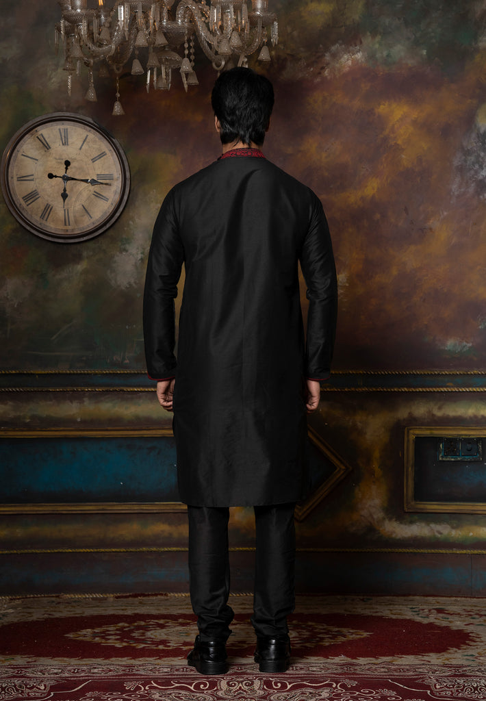 Black Angrakha With Embroidery Kurta