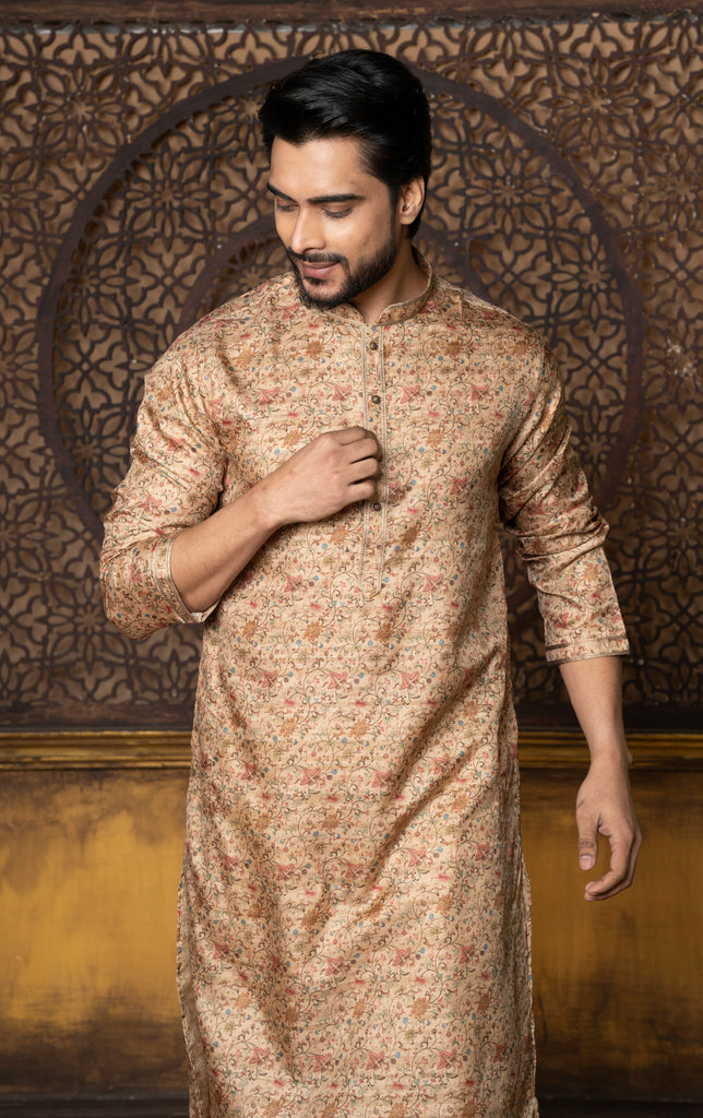 Brown Floral Printed Kurta