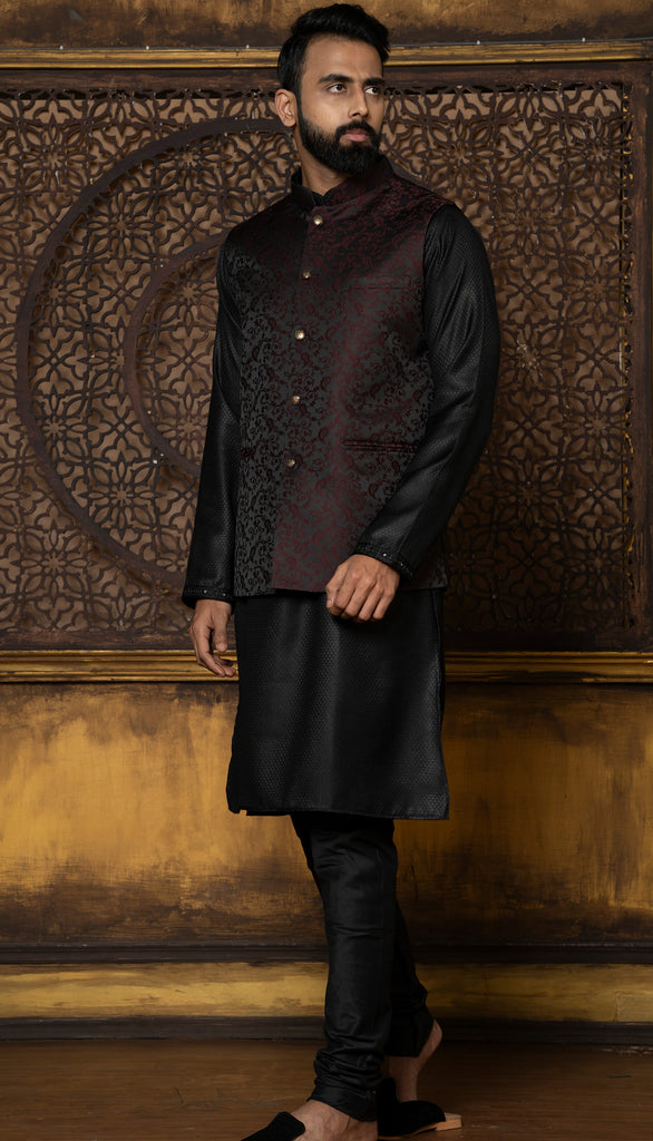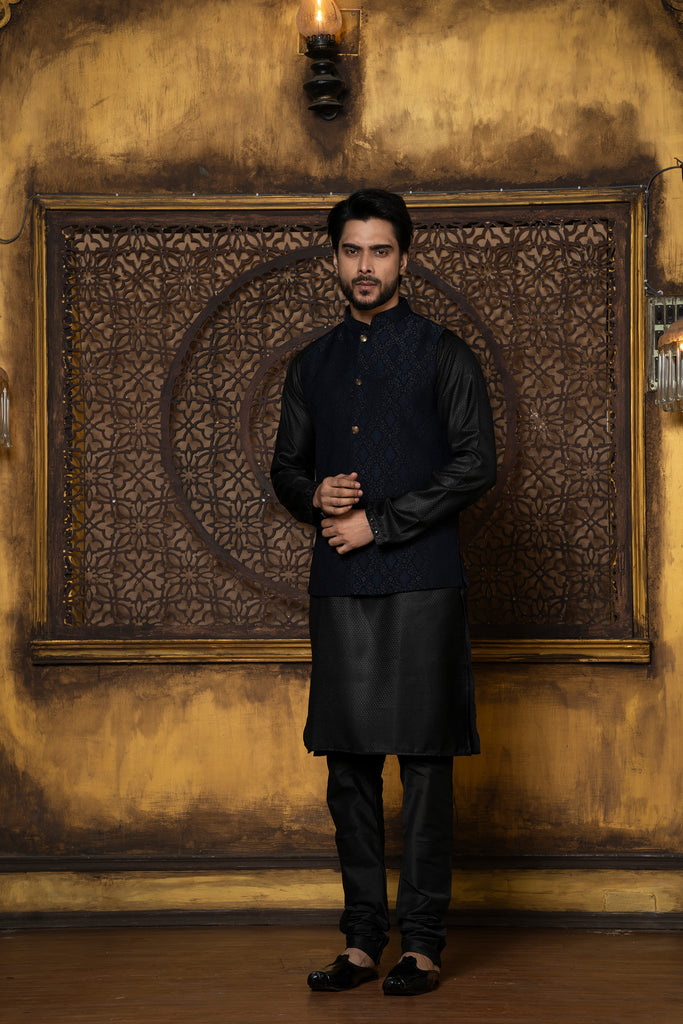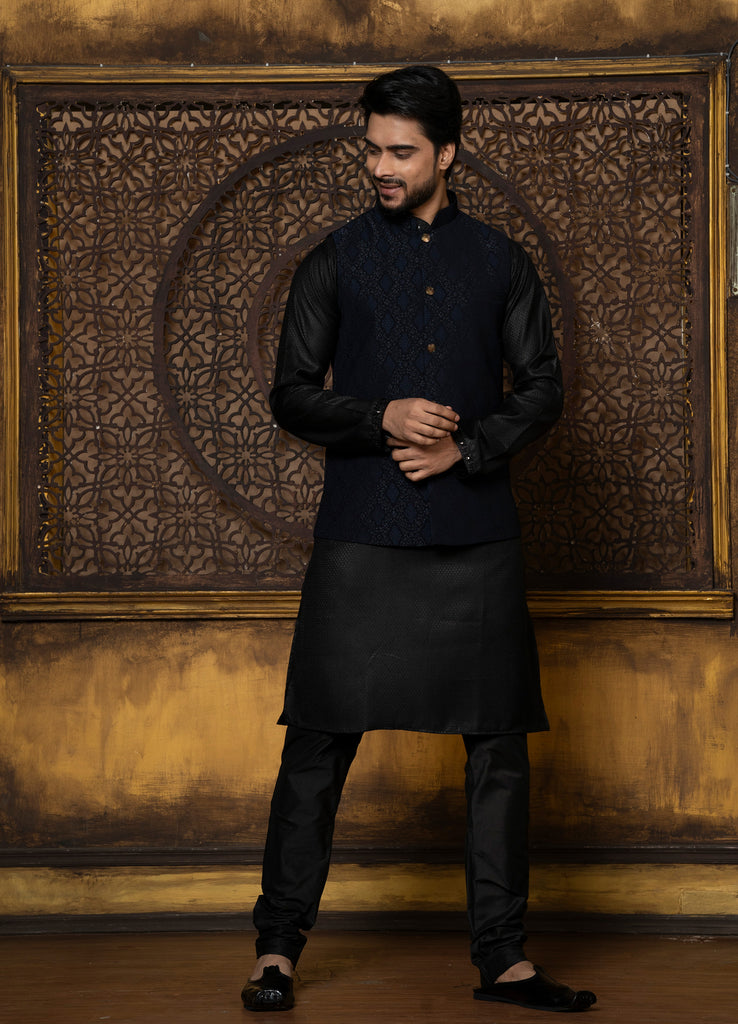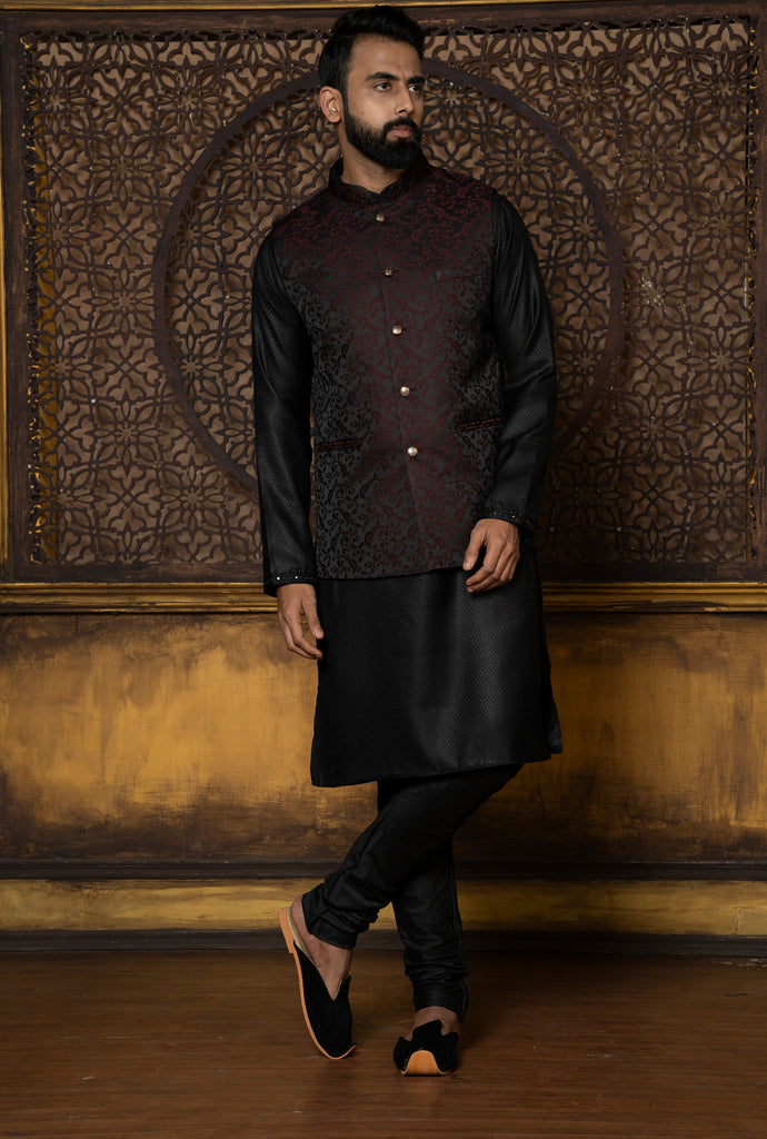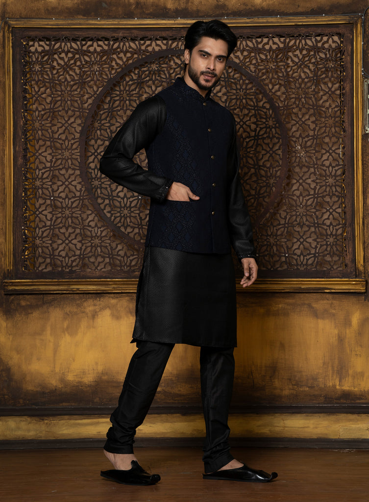 Full Set Includes: 1 Black Kurta, 1 Black Pyjama, and the Jacket of your selection
