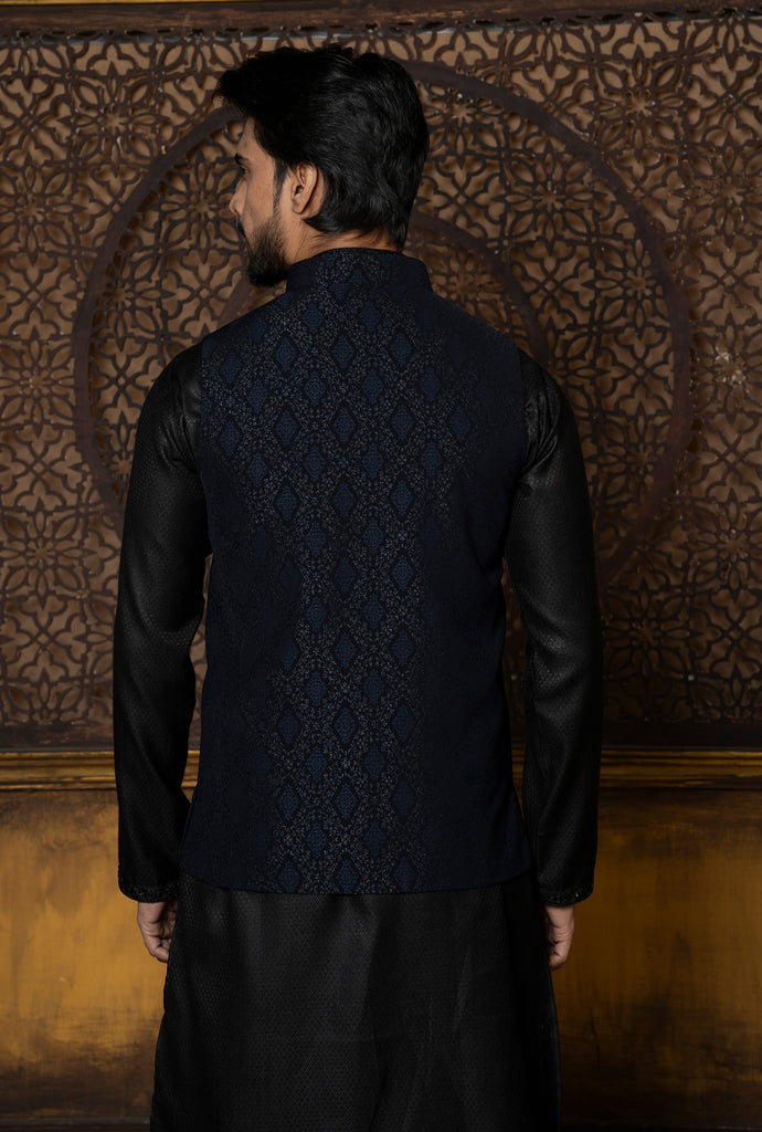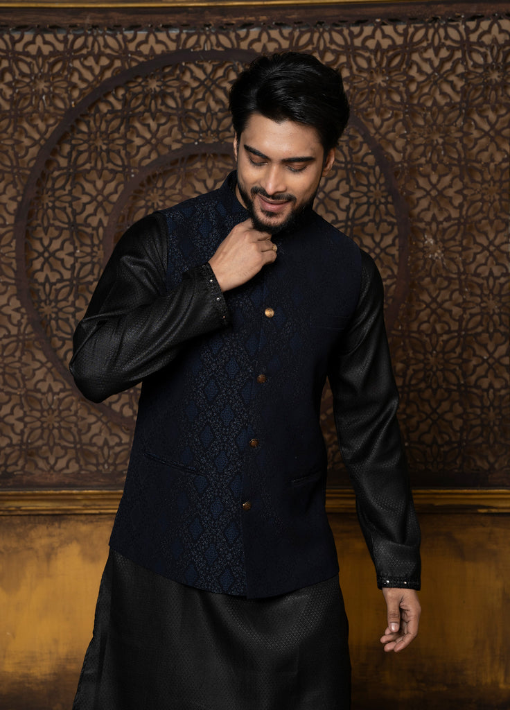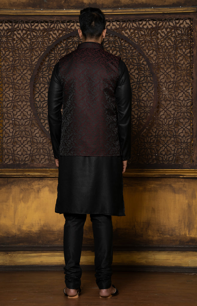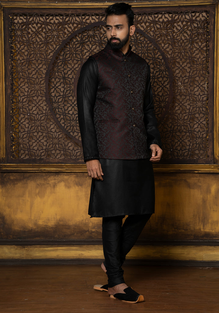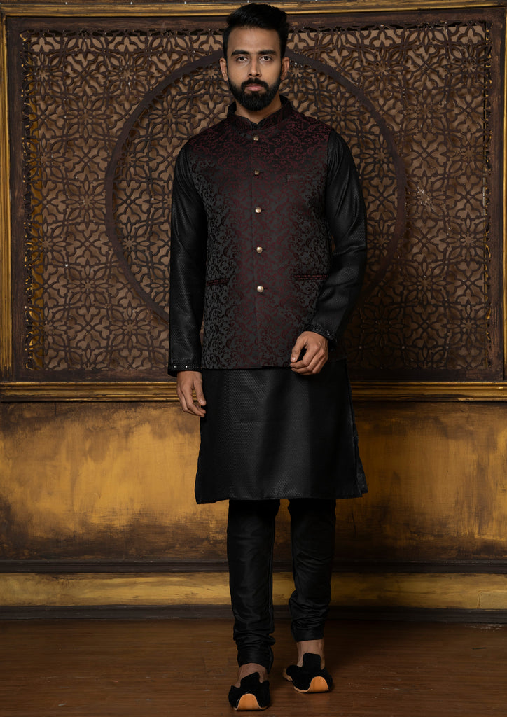 Full Set Includes: 1 Black Kurta, 1 Black Pyjama, and the Jacket of your selection
