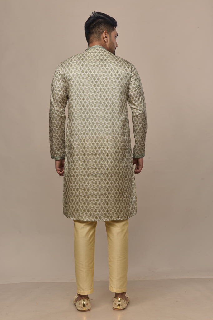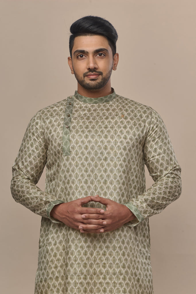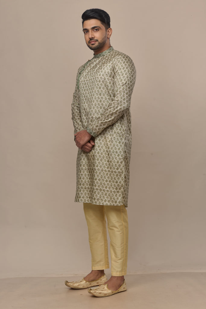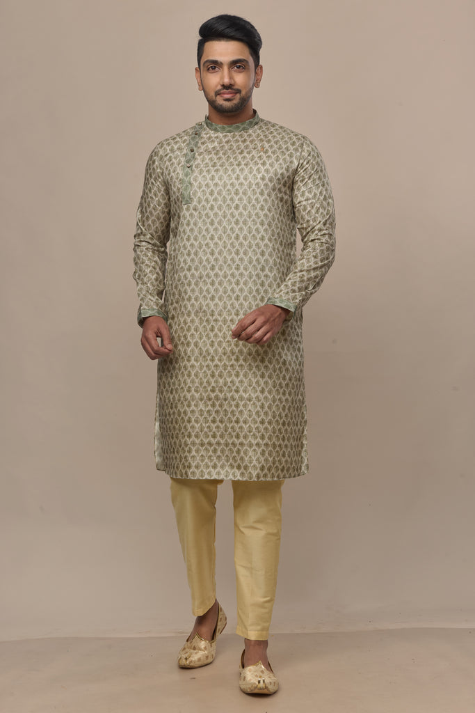 KHAAS Block Printed Silk Angrakha Kurta For Men