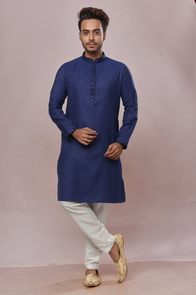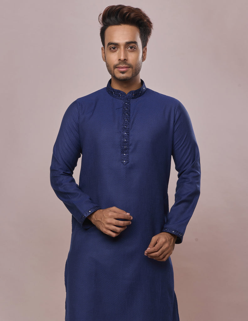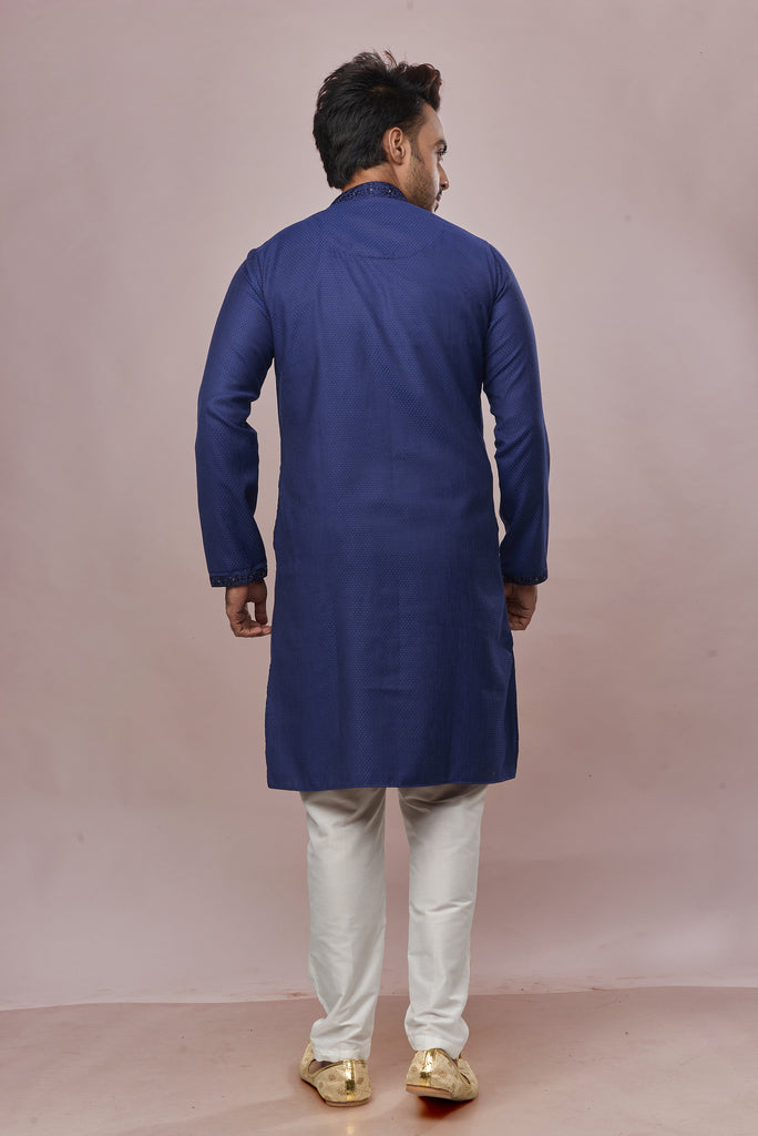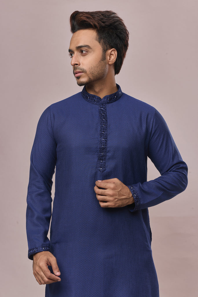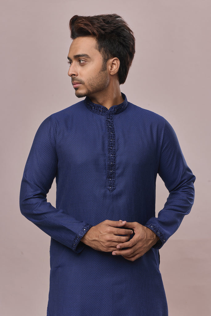 KHAAS Navy Blue Anmol Silk Kurta