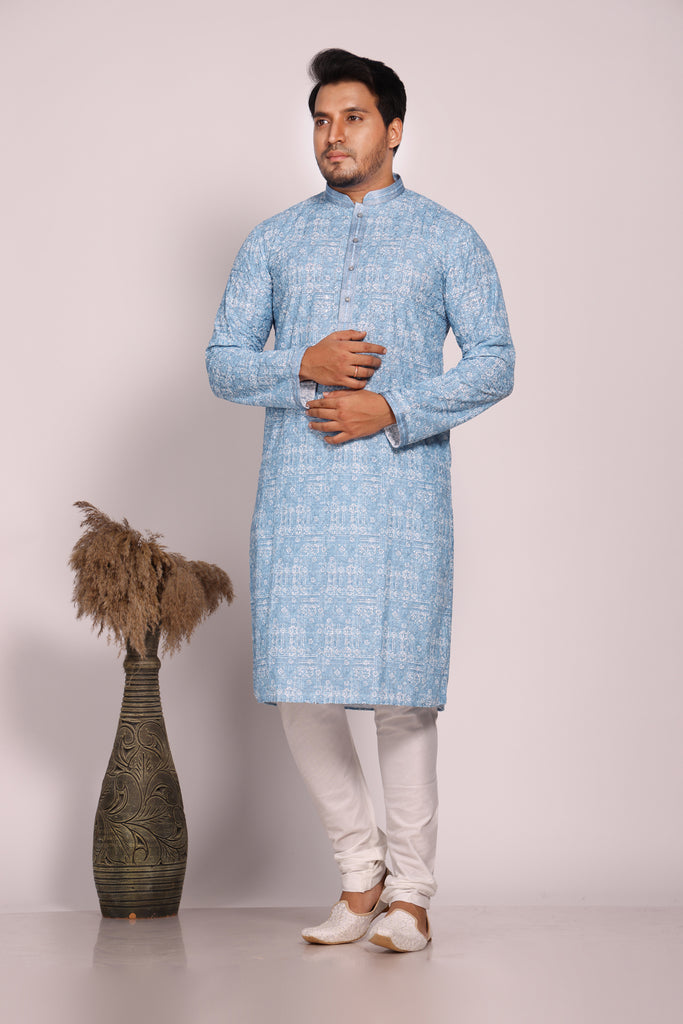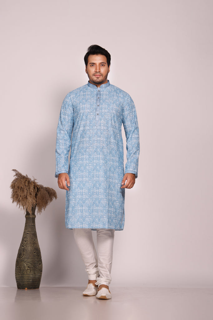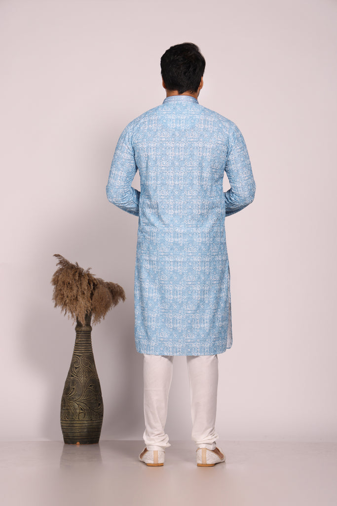 KHAAS Printed Blue Lucknow Chikan Kurta