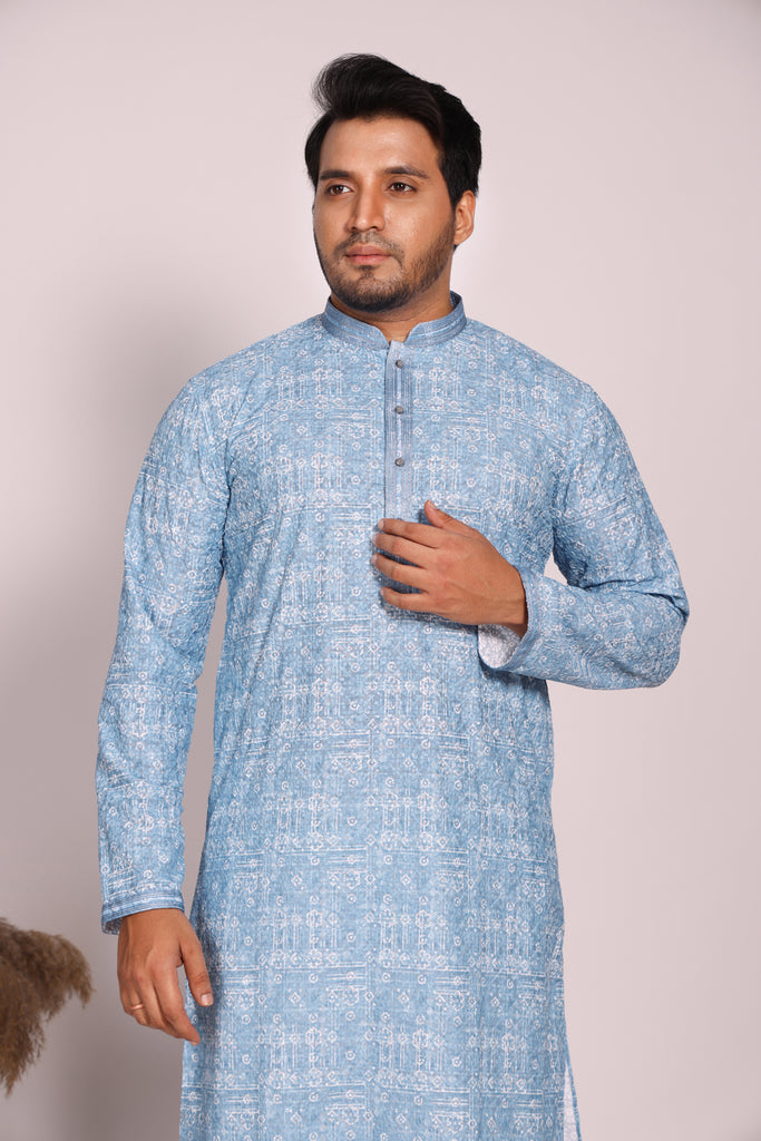 KHAAS Printed Blue Lucknow Chikan Kurta